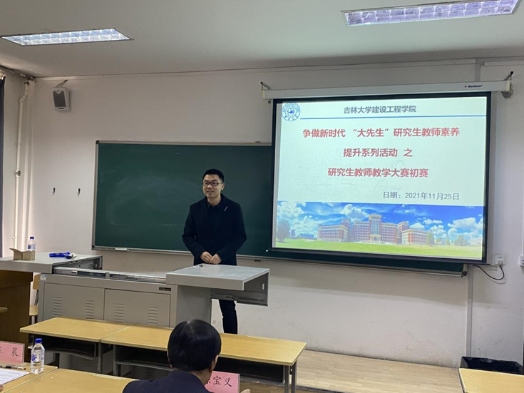 为深入贯彻落实习近平总书记对研究生教育工作的重要指示和全国研究生教育会议精神,按照吉林大学研究生院“争做新时代‘大先生’研究生教师素养提升系列活动”的总体工作部署,在学院戴振学院长和衣长涛书记的大力支持下,yl23455永利集团于1125日在水工楼503教室举办了yl23455永利集团争做新时代‘大先生’研究生教师素养提升系列活动——研究生教师教学大赛初赛,为全校研究生教师教学大赛做好学院层面的选拔工作。