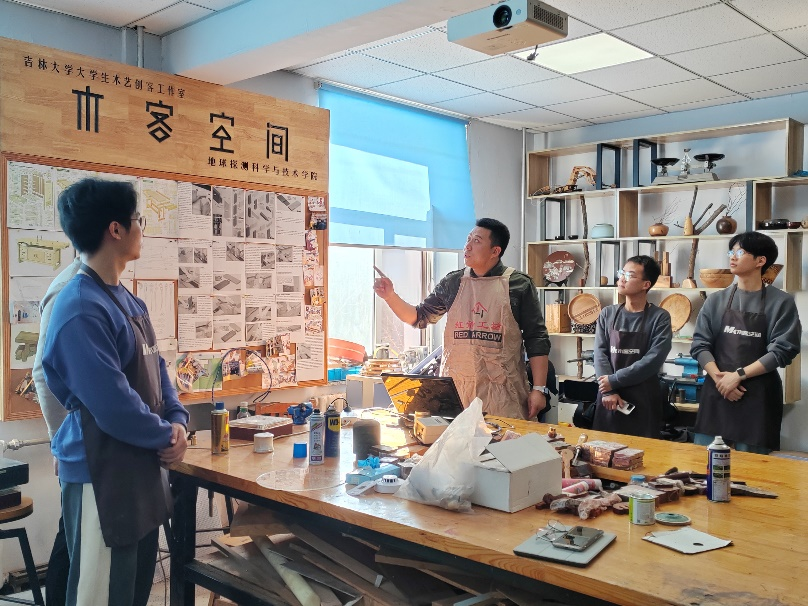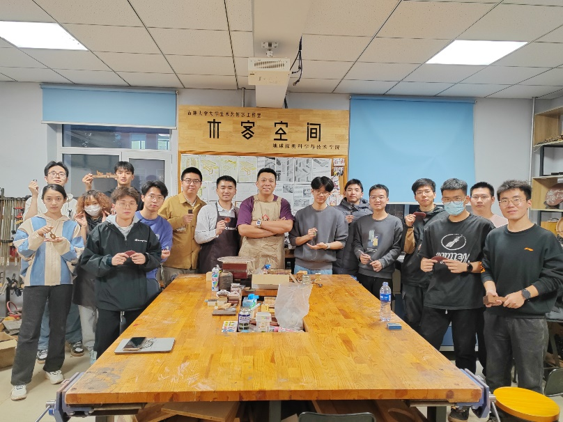 地球科学学院党委副书记兼副院长李阳老师担任木工指导老师。李阳老师为同学们详细介绍了木客空间的发展历史,木艺制品的类别、创作工具以及创作流程。在展示了往届优秀作品后,同学们开始巧妙构思,大胆创作。有了初步设计后,在李阳老师的指导下将创意制成作品。同学们学习木艺的真诚是可以从眼睛里看出来的。室外白雪皑皑,屋内“传道解惑”,木头打磨时的“哧哧”声在各个角落响起。