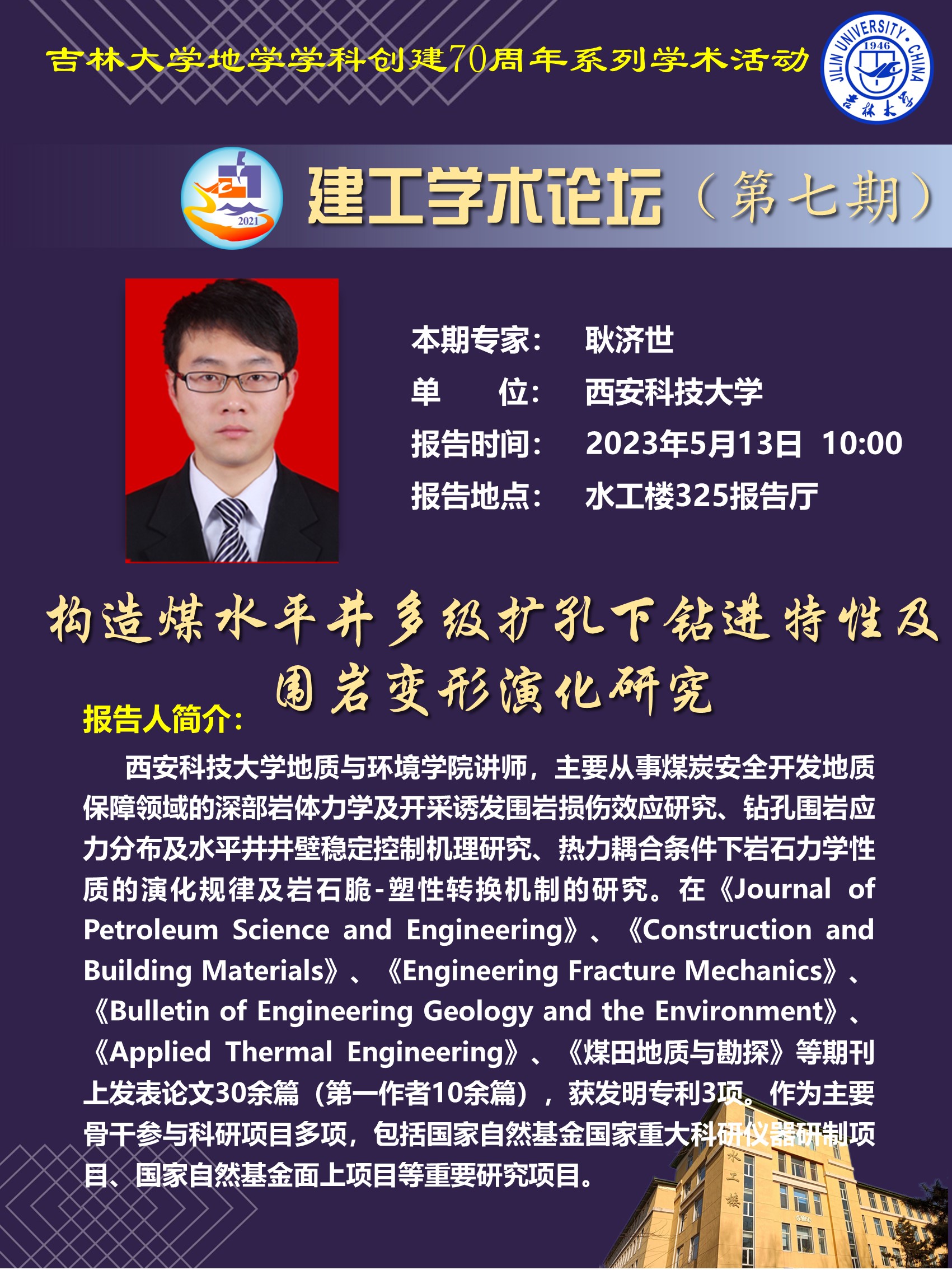 吉林大学地学学科创建70周年系列学术活动——建工学术论坛第七期