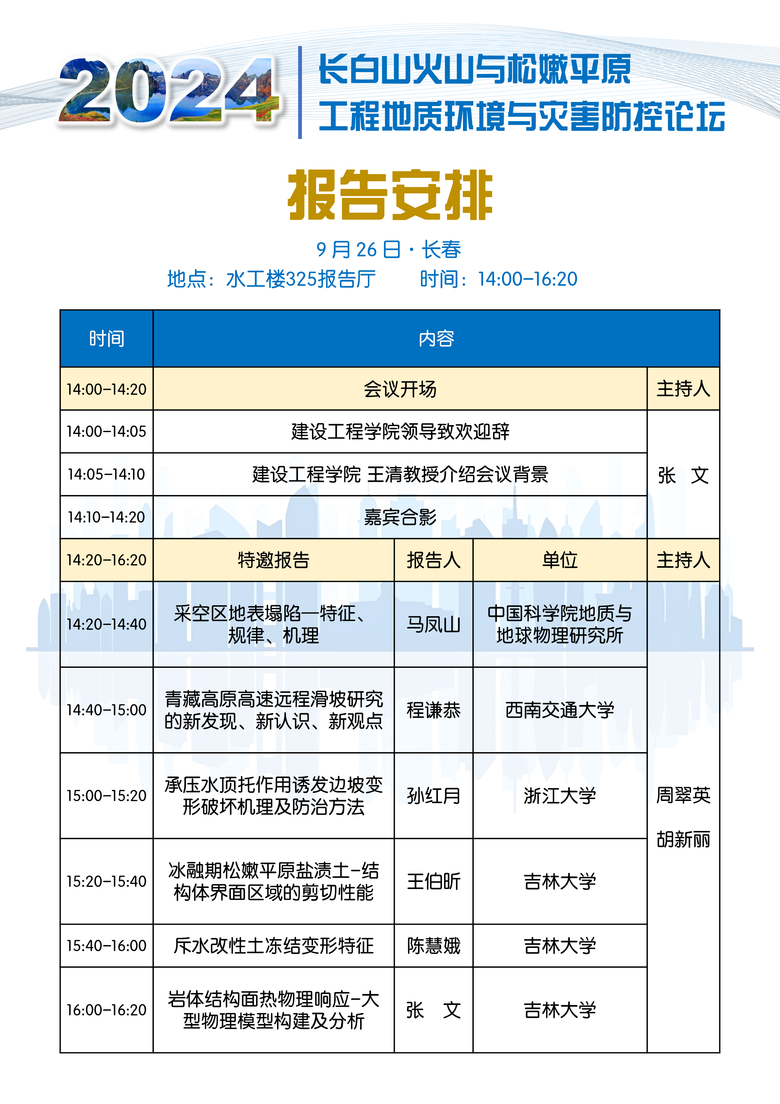 长白山火山与松嫩平原工程地质环境与灾害防控论坛