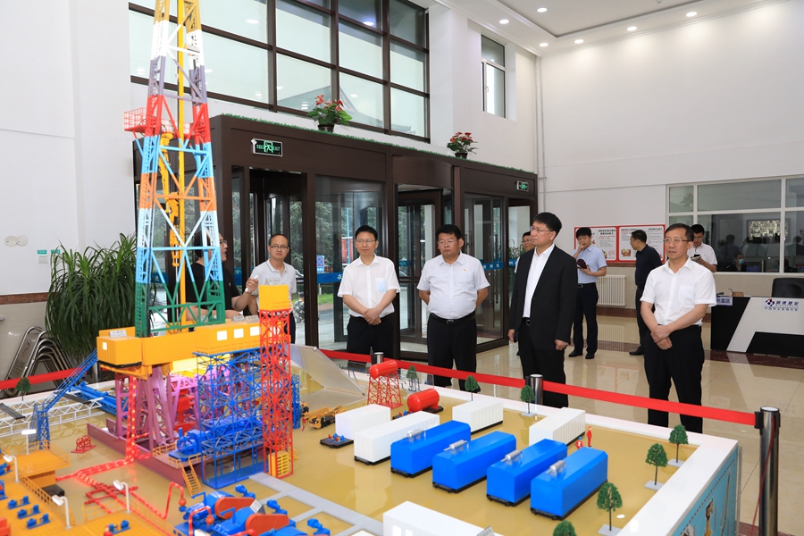 张希一行参观了位于朝阳校区钻采楼的“地壳一号”深部大陆科学钻探钻机模型,听取了项目研制过程及其应用等方面的介绍,详细询问了国际同类研究进展情况和相关专业人才引进情况。在学院实验大厅及扫描电子显微镜实验室,张希逐一了解各类实验设备的应用场景及关键核心部件的自主研发工作。