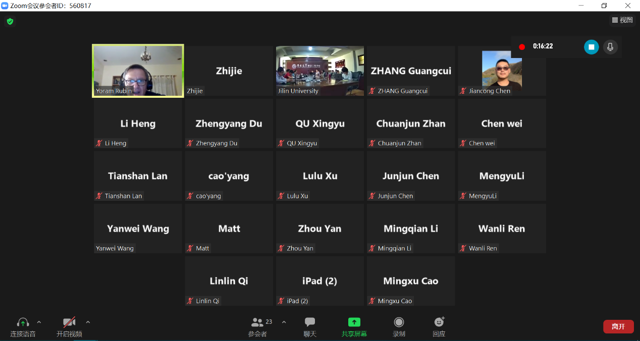 课程结课仪式在朝阳校区水工楼319会议室举行,吉林大学国际合作与交流处张广翠处长、朱蓓蓓副处长,yl23455永利集团戴振学院长、曹品鲁副院长以及学院青年教师和学生参加了仪式。加州大学伯克利分校Yoram Rubin教授及团队成员在“云端”出席了仪式。结课仪式由yl23455永利集团院长戴振学教授主持。