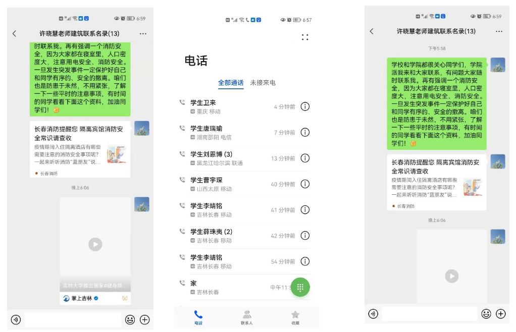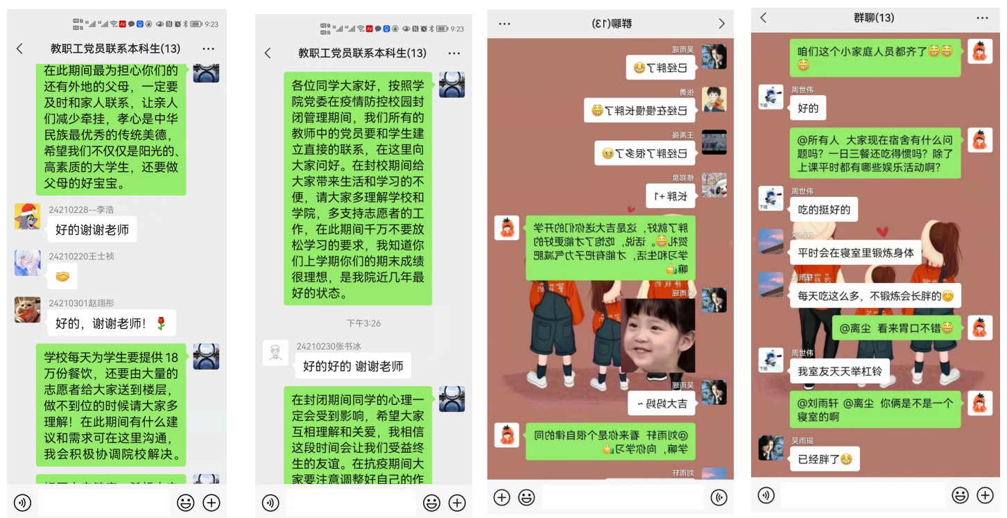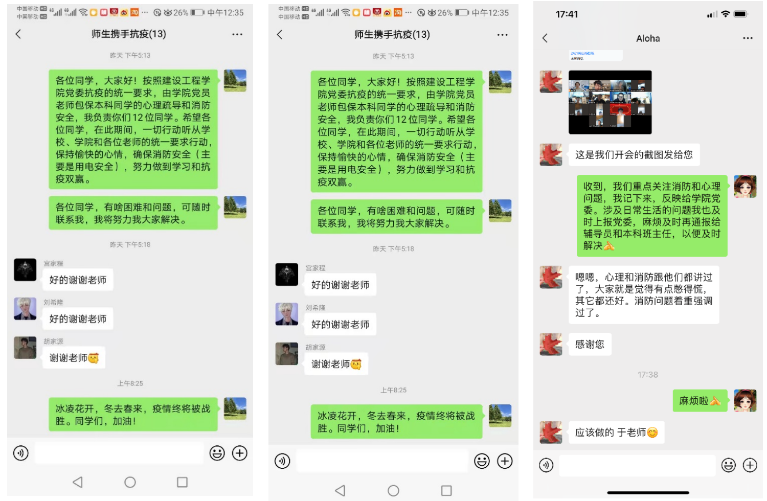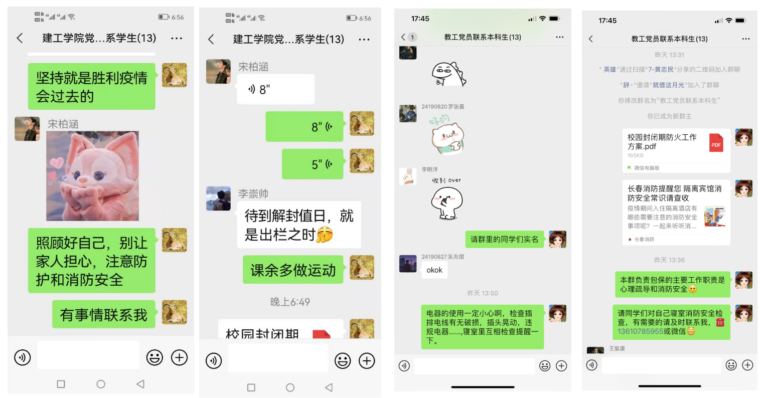 学院召开多次会议,牵头建立党员包保制度,统筹全院全体教职工党员包保学生日常管理,建立临时会话群组,全面实时掌控学生日常学习生活需求。做好疫情期间学生服务工作的有力保障,体工作落实到人,彰显学院人文关怀。在战疫一线,教工、学生党员冲锋在前。助力参与社区、学校的疫情防控志愿服务工作,截止到目前不完全计算,总计参与人数约达500余人,为吉林大学防疫工作贡献建工力量。