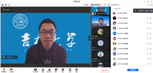 学院党委书记衣长涛也全程参加了此次活动,并在线上与大家进行了互动交流。衣书记首先感谢了刘振泽教授深入透彻的报告,让同学们在今后的学习生活中明确目标,做好规划,yl23455永利集团也会在接下来继续深入开展此类学术活动,邀请更多校内外专家学者,为大家带来更广阔、更前沿的学术知识,以进一步提升同学们的学术素养。衣书记对同学们也提出了几点希望。首先,大家要严格按照学校防控要求,落实规定的防控措施,同时学院也派驻大量教师深耕一线与学生共同抗疫。其次,在生活上,学校努力保障大家的日常生活需求,希望同学们常同父母联系,同学之间要互相关爱。在学习上,网课期间应当保持高度自觉,保证听课质量。封控时期也是锤炼品格的好时机,希望同学们弘扬担当精神,勠力同心、锐意进取,共克时艰,相信春天终会到来。