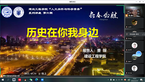 报告会结尾,汤海燕老师总结发言:曹琛老师带我们欣赏了长春典型建筑的风貌,也解开了这些建筑背后的历史,这些建筑不乏有一些为吉林大学所沿用,也使各位同学成为了历史的见证者和参与者,更为将来历史的创造者。我们当携手未来,齐心协力抗击疫情,发挥新时代大学生的砥砺担当。