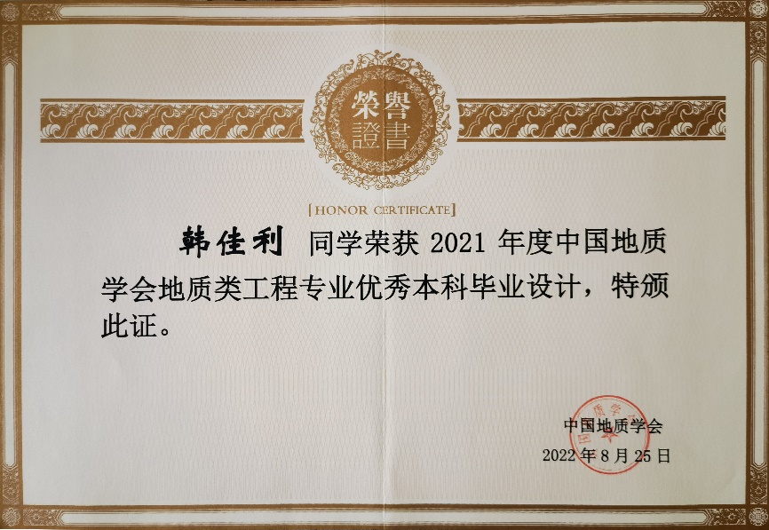 自2019年来,中国地质学会为创新工程教育理念,激发地质类工程专业指导教师和学生在毕业设计工作过程中的积极性,切实提高地质类工程教育的教学质量和毕业设计质量,推动工程教育专业认证工作高质量发展,开展了地质类工程专业优秀本科毕业设计评选工作,yl23455永利集团地质工程专业共有5篇本科毕业设计获得优秀本科毕业设计。