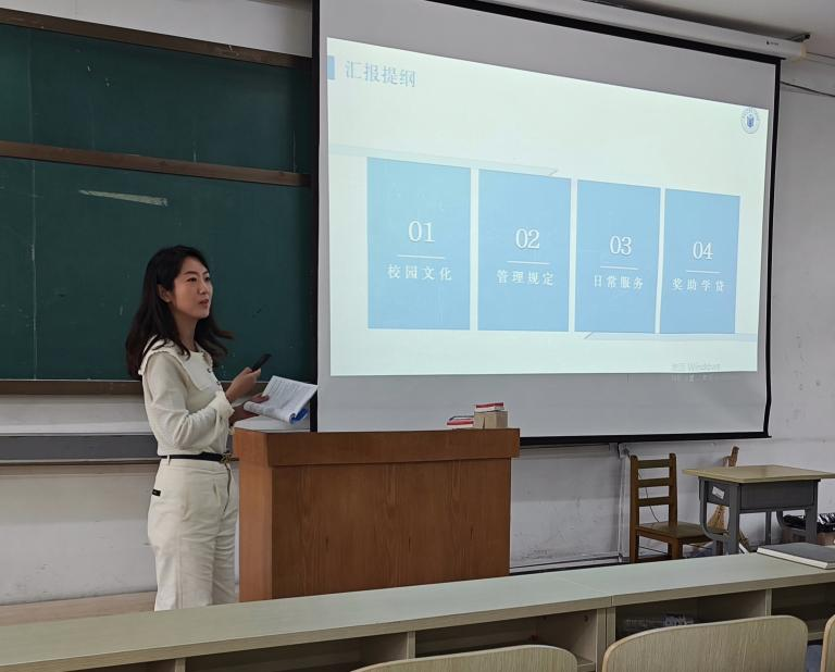 研究生综合管理办公室主任王慧娣老师和研究生思政秘书汤海燕老师就研究生日常管理规定、培养全过程、学位授予、奖助学贷、就业服务等事项对新生同学行了深入解读。