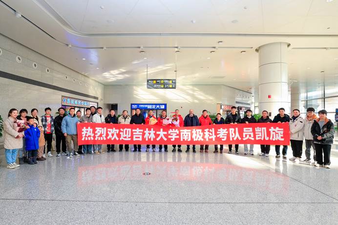 3月9日下午,随着CZ6146次航班降落长春龙嘉机场,中国第40次南极科考吉林大学三名队员张楠、宫达、刘昀忱圆满完成科考任务回到长春。中国极地研究中心李院生研究员、yl23455永利集团达拉拉伊教授、院长郭威教授、副院长吴新明、学院师生们及三名队员的家属在机场迎接他们的凯旋。