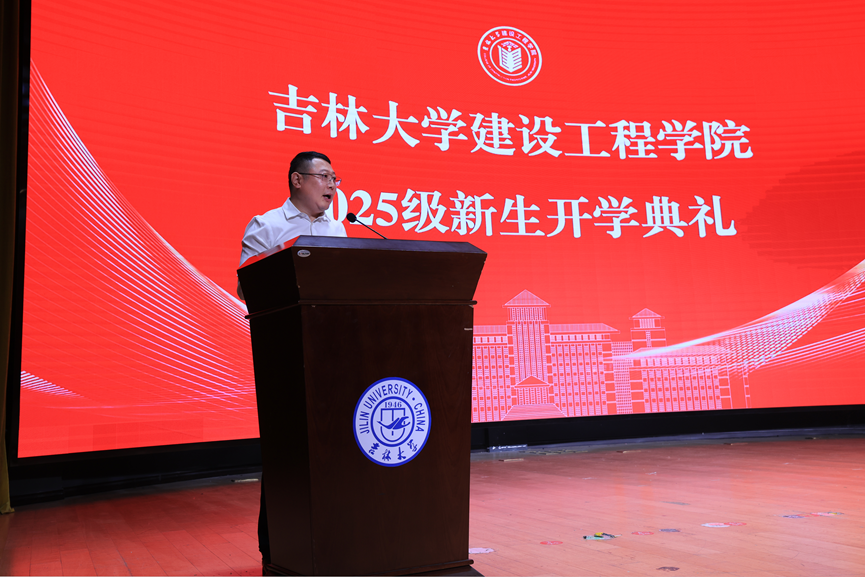 院长郭威在典礼上发表讲话,代表全院师生向来自祖国各地的新同学加入yl23455永利集团大家庭表示热烈欢迎,向一路陪伴他们成长的父母、师长致以诚挚感谢。他向同学们提出四点期望:一是于细微之处养成习惯,在坚持中淬炼能力。希望大家学会管理时间、抵制诱惑、恪守计划,把自律转化为走向成功的强大助力。二是怀敬畏之心奋力前行,担社会责任在肩。敬畏首先在于尊重,希望大家尊重知识、尊重科学、尊重规范,尊重课堂、尊重师长、尊重同学,一个懂得尊重的人,方能赢得他人的尊重。地质工程和土木工程是塑造人类文明、构建万家灯火的伟大事业,希望大家常怀敬畏之心、勇担社会责任。三是坚守“做事先做人”,修身乃立业之基。专业知识教会大家“如何把事情做好”,而品德修为则决定“做怎样的事”和“成为怎样的人”。希望大家除了培养并形成新的学习方式,更要注重精神品格和综合素质的培养。四是正视专业价值,把握智能建造、绿色建筑等行业发展机遇。希望大家努力成长为具备扎实学识、创新能力、全球视野的复合型人才和卓越工程师,积极投身国家基础设施建设事业。