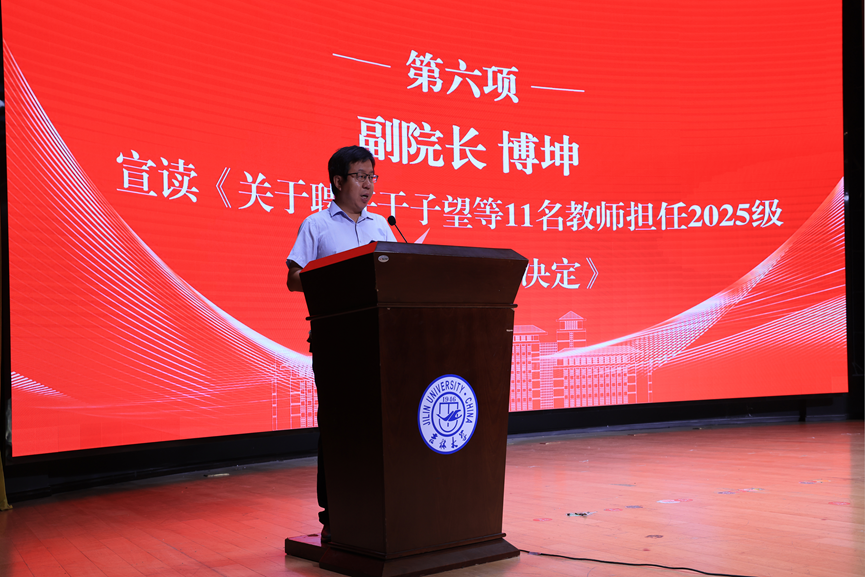 副院长曹品鲁、侯传彬,学院各系、所教师代表,本科教学办公室、学生工作办公室负责同志,全体2025级新生班主任,高年级学生代表等参加开学典礼。