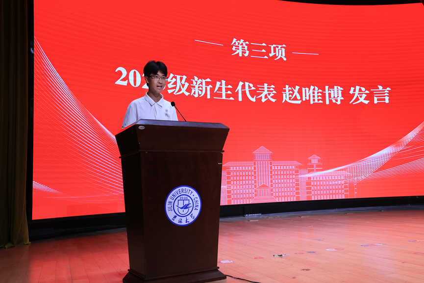 2025级新生代表赵唯博在典礼上发言,向帮助大家顺利开启大学学习生活之路的学院领导、全体老师以及高年级同学们表达崇高敬意和诚挚感谢。他代表全体新生庄严承诺,将转变角色,潜心求学;知行合一,勇于实践;修身立德,全面发展,以奋斗之姿书写大学时光,努力为yl23455永利集团增添新的光彩。