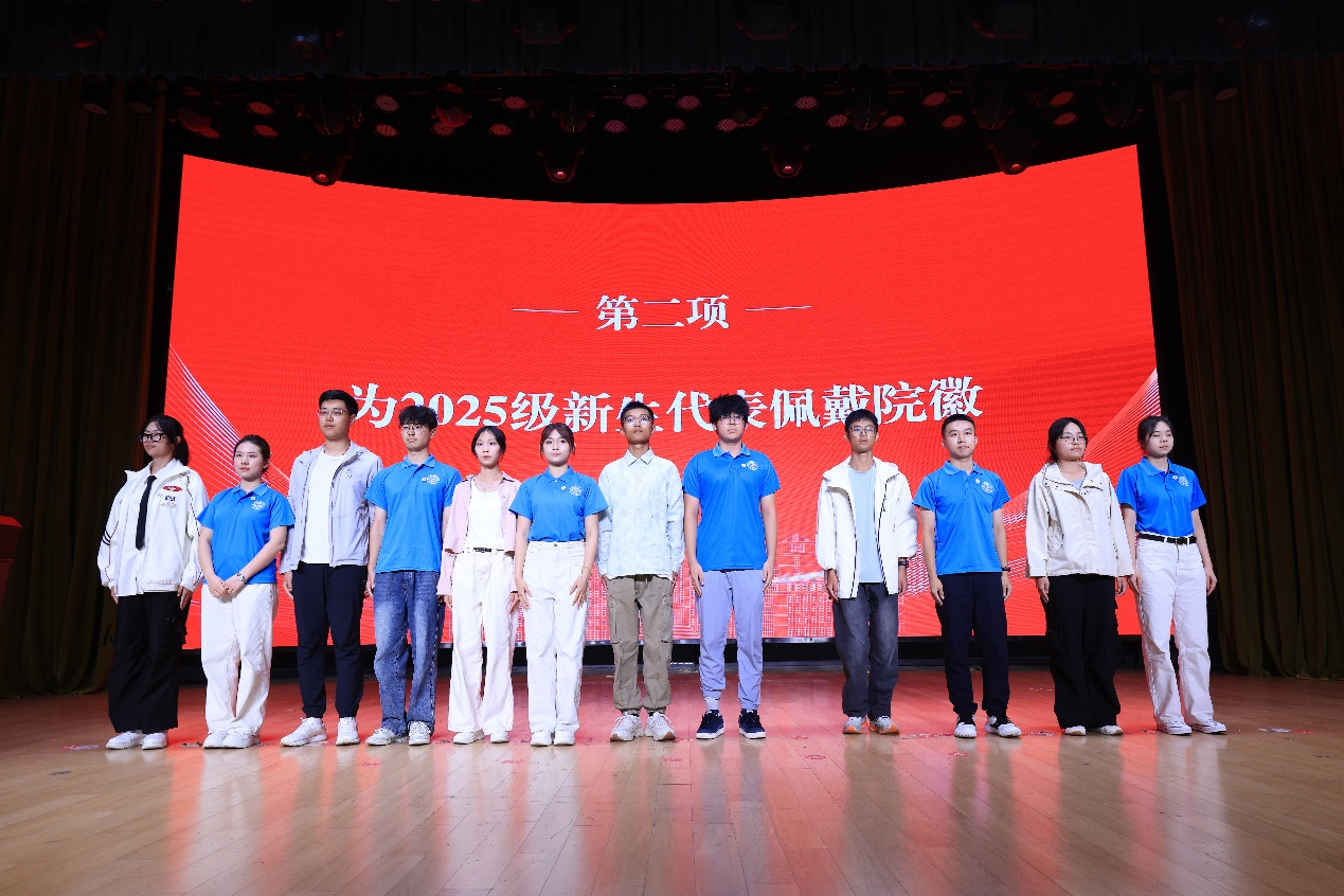 2025级新生佩戴院徽仪式在典礼上举行,高年级学生为新同学代表郑重佩戴院徽,象征着他们正式成为光荣的“建工人”,时刻提醒他们不忘砥砺求学初心,牢记工程报国之志。