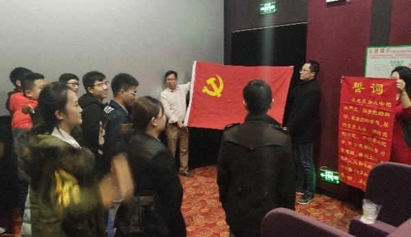 观影结束后,全体党员面对党旗重温了入党誓词,时刻提醒自己要不忘初心,牢记使命。