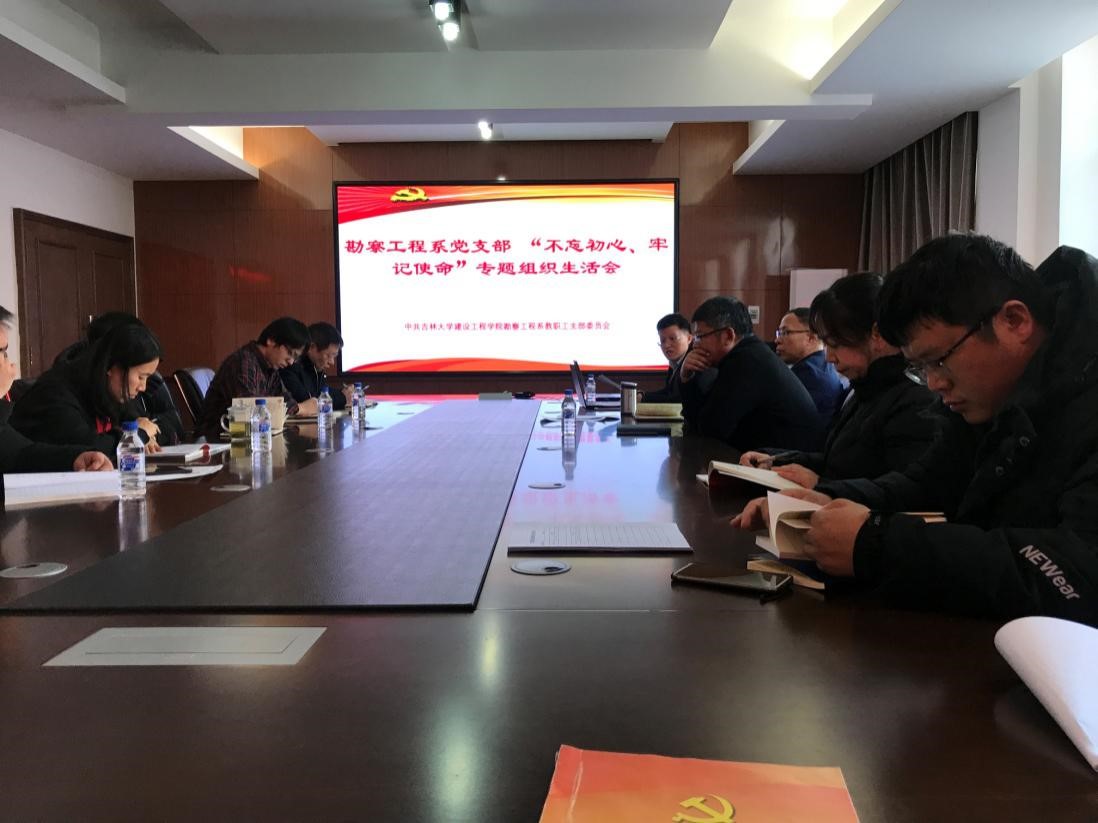 按照学校党委组织部《关于组织召开“不忘初心、牢记使命”专题组织生活会和民主评议党员的通知》要求,2019年12月19日上午,yl23455永利集团勘察工程系教工党支部在水工楼319会议室召开“不忘初心、牢记使命”专题组织生活会,并进行党员民主评议活动。学院党委副书记衣长涛同志全程参加会议,勘察工程系教工党支部所有党员同志参加了此次活动。