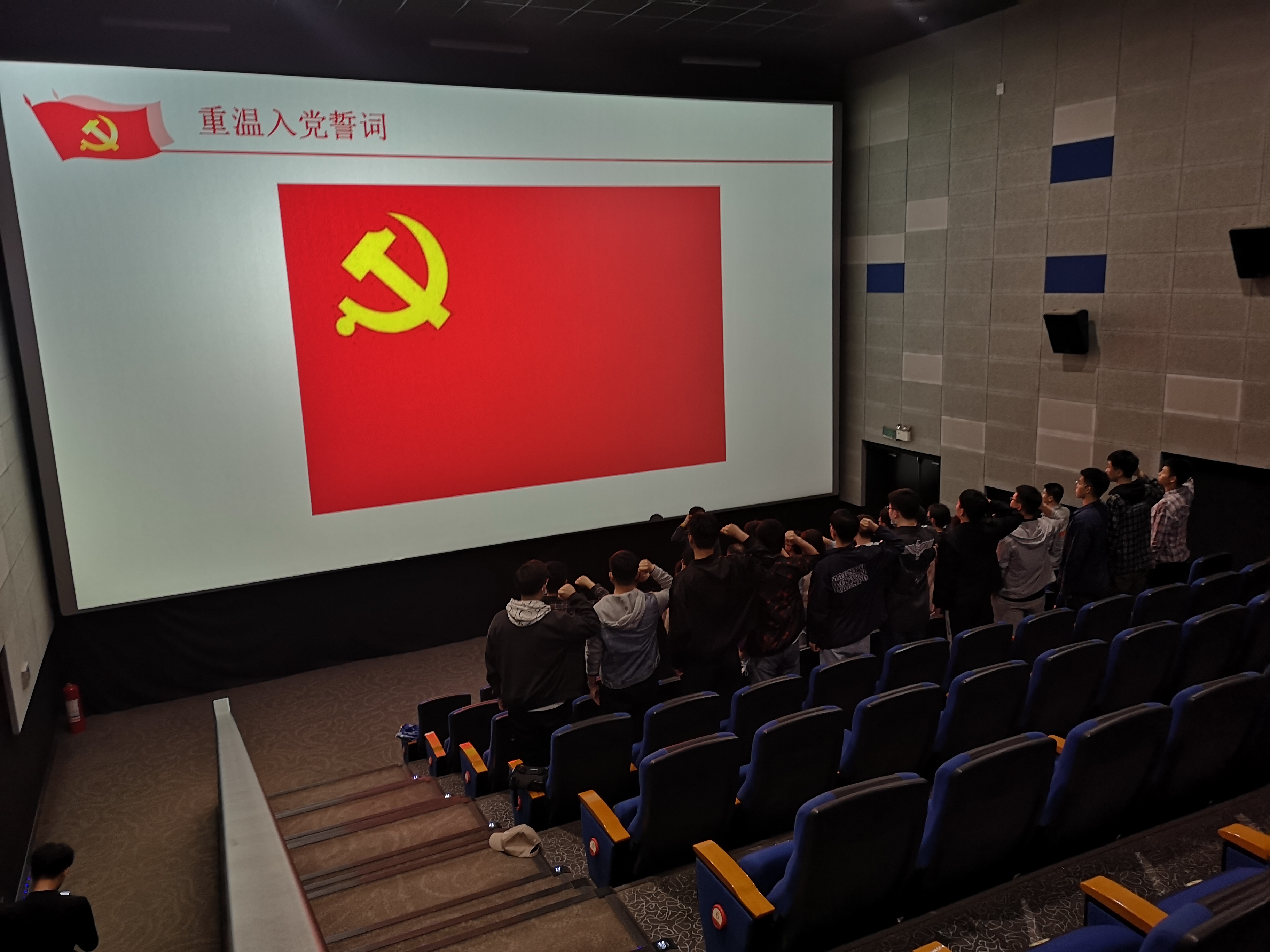 观影结束后,院党委副书记、纪委书记闫国栋,研究生思政秘书汤海燕与硕士生党员共同重温入党誓词。入党誓词是行动指南,是共产党人的座右铭,不断重温,终身践行,前进路上,对照承诺,时时检视自我,不断校正航向,方能行稳致远。想想精气神有没有减弱,查查警觉性有没有降低,看看脚下路有没有走歪……不断重温的意义,正在于此。在硕士学生党支部书记马秋阳同志的带领下,全体党员一起高举右手,面对鲜红的党旗,再次庄严宣誓:“我志愿加入中国共产党……随时准备为党和人民牺牲一切,永不叛党。”铿锵恢宏的誓词,强烈震撼着在场的每一位党员,一字一句,神圣而豪迈,铮铮誓言,体现了党员同志们对中国共产党的无限忠诚,坚定了入党使命,奋斗初心。