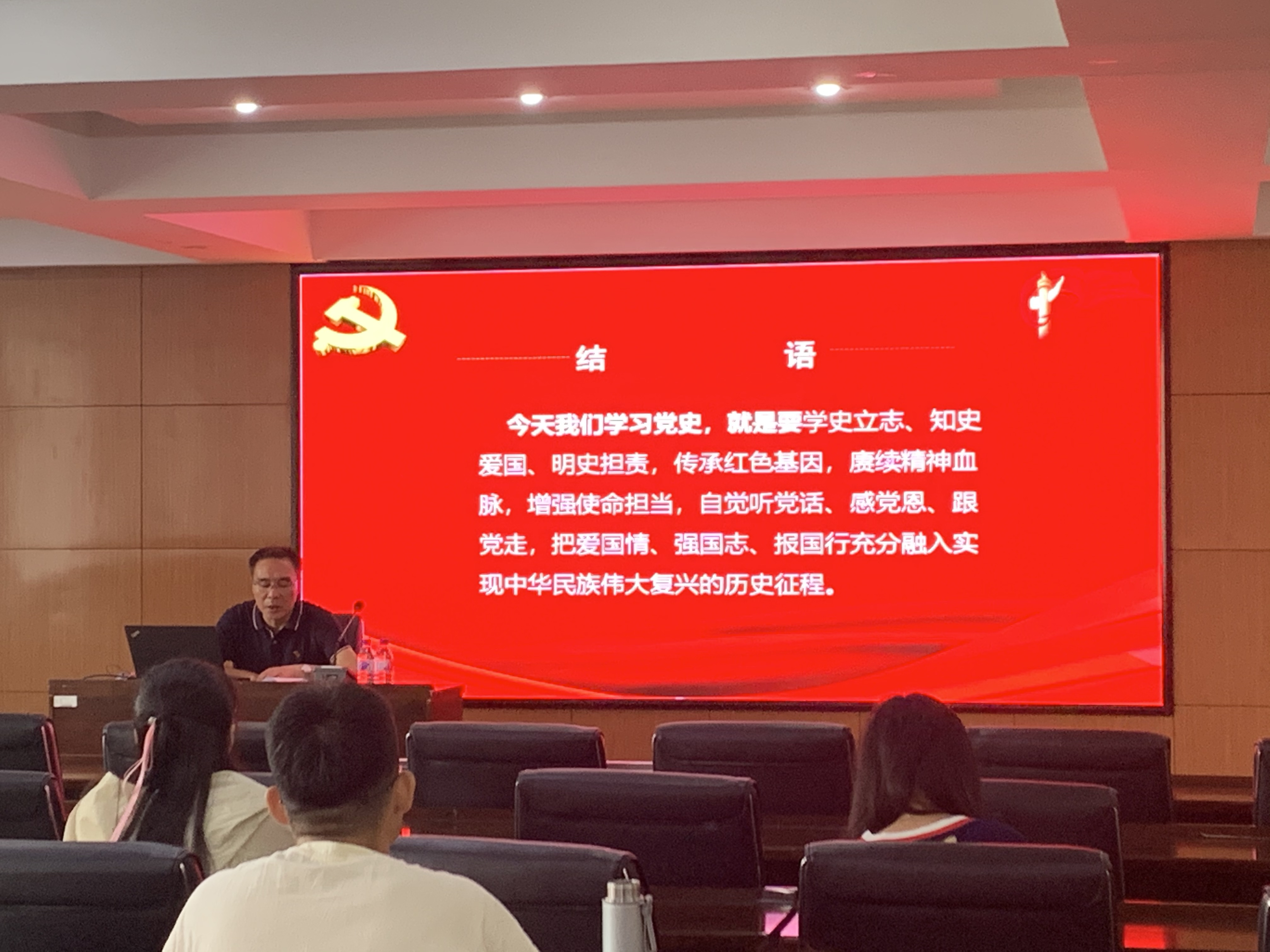 党课最后,闫书记寄语全体研究生党员:我们学习党史,就是要学史立志、知史爱国、明史担责,传承红色基因,赓续精神血脉,增强使命担当,自觉听党话、感党恩、跟党走,把爱国情、强国志、报国行充分融入实现中华民族伟大复兴的历史征程。