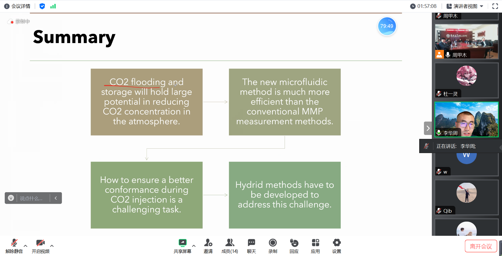 2023年11月16日,加拿大阿尔伯塔大学终身教授Li Huahzou受邀以《CO2 Capture and Storage: Development Status and outlook》为题为yl23455永利集团师生开展线上学术讲座。学院副院长曹品鲁教授主持了本场讲座,包括勘查工程系主任刘宝昌教授在内的学院近30名中青年教师、博士研究生和硕士研究生代表参加了本场讲座报告会。