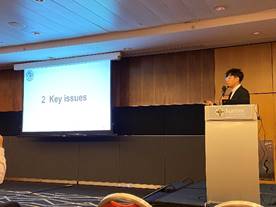 李曦桐博士做了题为Numerical simulation of CO2 sequestration in the exploitation of marine hydrate reservoirs under by depressurization combined CO2 replacement的海报展示,综合考虑甲烷生产与CO2封存的效率,得到了置换联合法封存CO2的最佳注入时间与最大封存量,吸引了诸多国内外学者交流,回答了会议主席关于CO2封存模式的提问。