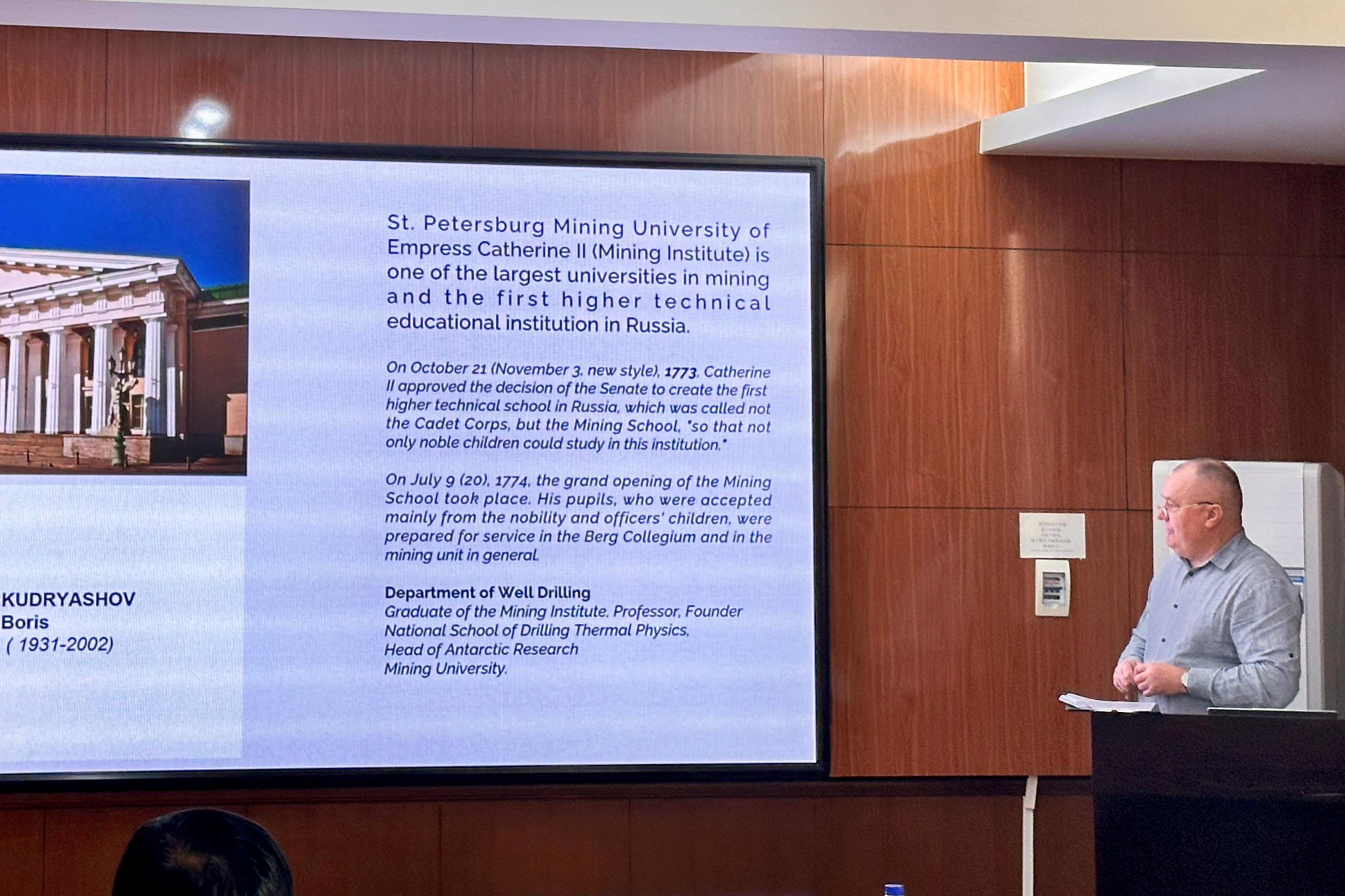 在本次分论坛活动上,Chisliakov教授和Lykov研究员为学院师生呈现了三场深入的学术报告。他们首先回顾了苏联时期超深钻探项目的历史,分享了项目启动、执行过程中遭遇的技术挑战,这些经验对于深化对地球深部结构的理解以及推动钻探技术的发展具有重要价值。接着,专家们详细介绍了在俄罗斯广泛应用的钻井注浆技术,强调了其在提升地下结构的防水性、稳定性和安全性方面的关键作用,这对于隧道和矿井的环保和经济效益至关重要。最后,他们分享了贝加尔钻探项目的核心成果,通过在贝加尔湖不同地质结构中的钻探,获取了宝贵的古气候和地质数据,为研究亚洲乃至全球古气候变化提供了宝贵的参考。这些报告不仅为与会者提供了前沿的学术信息,也为学院未来的研究方向开辟了新的思路。