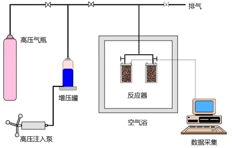 (3) 利用CH4气体冲洗高压盲釜及整个管路系统35次,以置换高压盲釜及管路系统中的空气。
